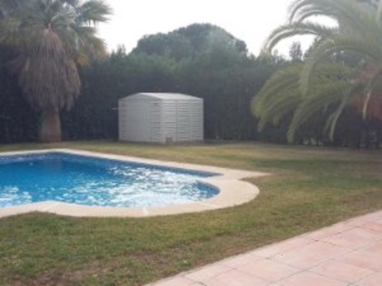 Precioso jardín de 1000m2 muy cuidado, gran piscina, trastero, leñero, aseo, pequeña cocina y barbacoa.