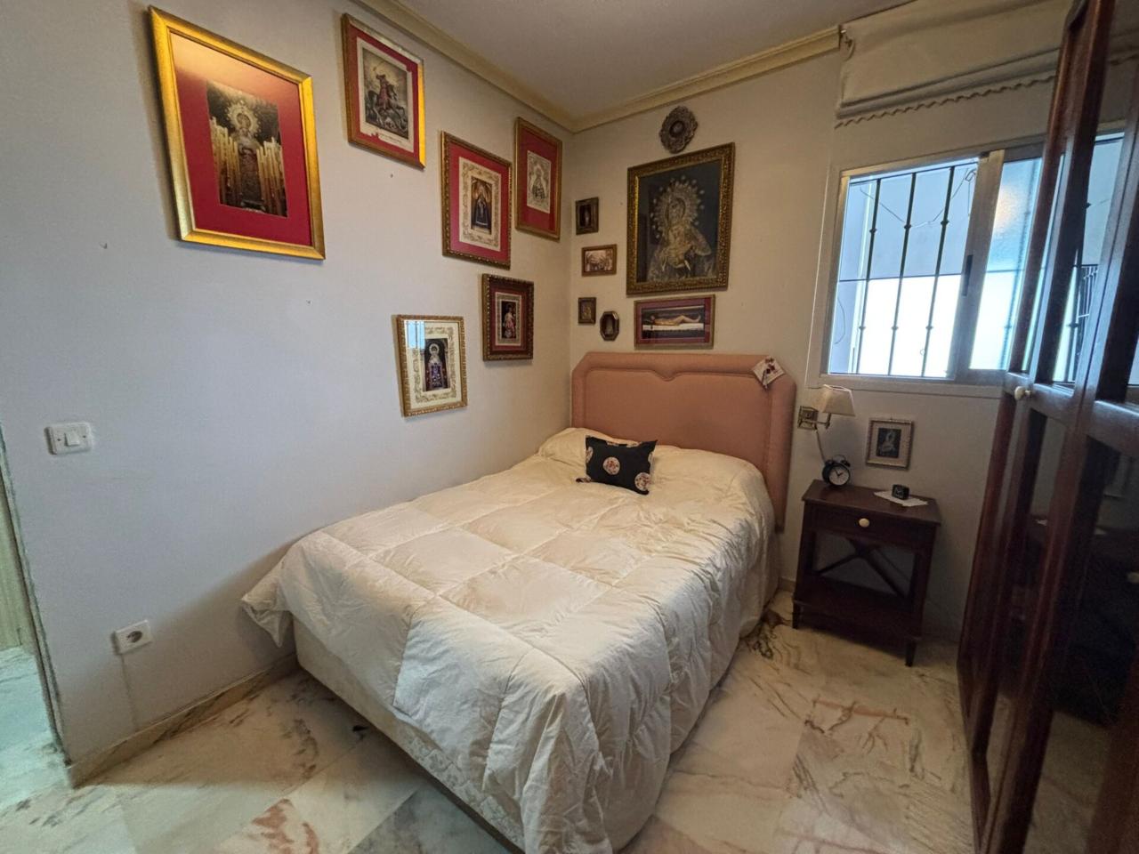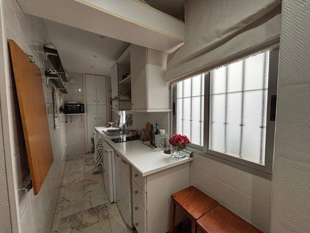 El piso de 58 m2 con patio interior dispone de un dormitorio con armario empotrado, cuarto de baño con placa de ducha, salón-comedor y cocina amueblada y equipada.